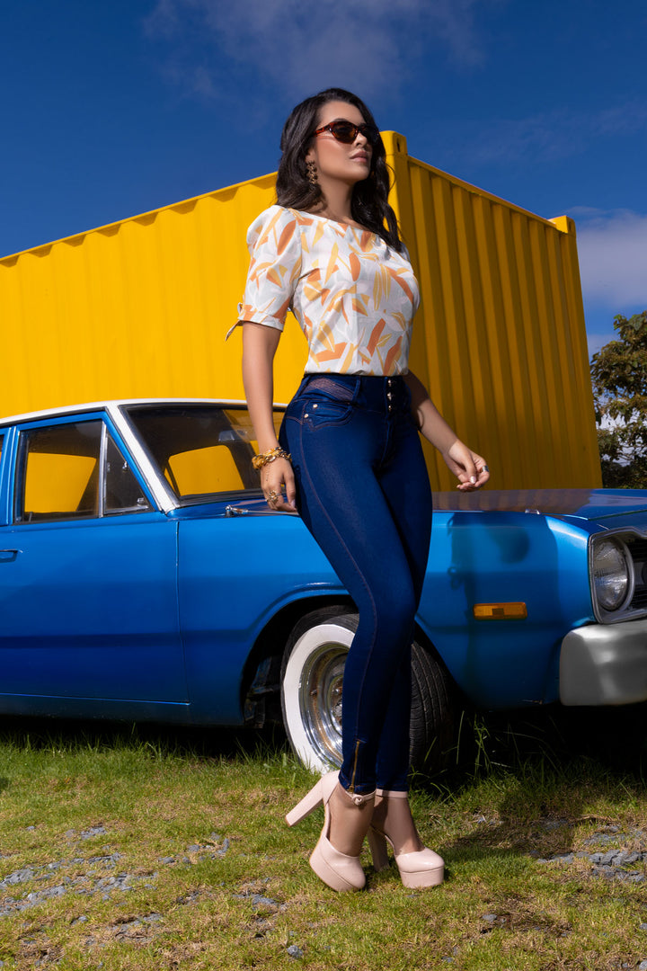 El jeans es muy bonito. Tiene detalles de buen gusto, terminaciones impecables.